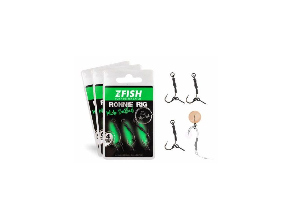 Velice efektivní montáž RONNIE RIG poskládaná z komponentů prvotřídní kvality. Jedná se o montáž určenou především pro lov s plovoucí nástrahou těsně u dna. S Ronnie Rigem bude váš lov vždy o level úspěšnější. Balení obsahuje tři hotové montáže. Podstatou montáže je velmi ostrý háček, který pomocí závrtávacího trnu (nástraha je volně pohyblivá) několikanásobně zvýší pravděpodobnost zapíchnutí háčku v rybí tlamě. Dalším důležitým prvkem montáže je zarážka, která drží trn s nástrahou na požadovaném místě. Tato zcela nová řada s označením "3Fish", to je bižuterie v prémiové kvalitě s využítím nejlepších dostupných materálů. Kdo jednou zkusí a pozná ten rozdíl, jiné už chtít nebude.